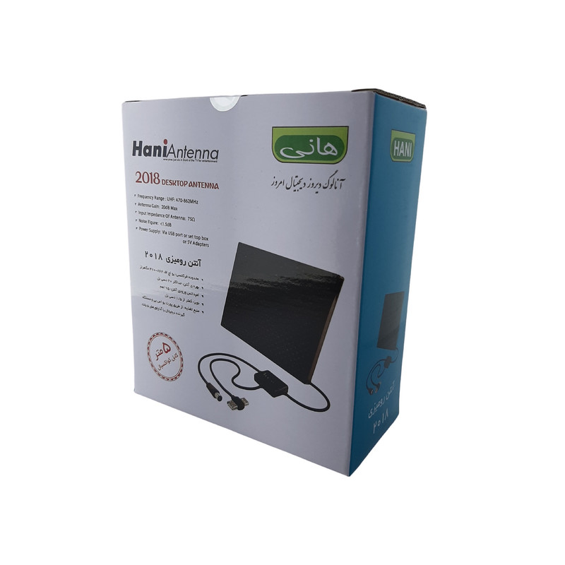 مشخصات : طول کابل: 5متر محدوده فرکانسی : یو اچ اف 862-470 مگاهرتز بهره ی آنتن : حداکثر 20 دسی بل آمپدانس ورودی آنتن : 75 اهم نویز : کمتر از 1.5 دسی بل منبع تغذیه : از طریق پورت USB یا دستگاه
