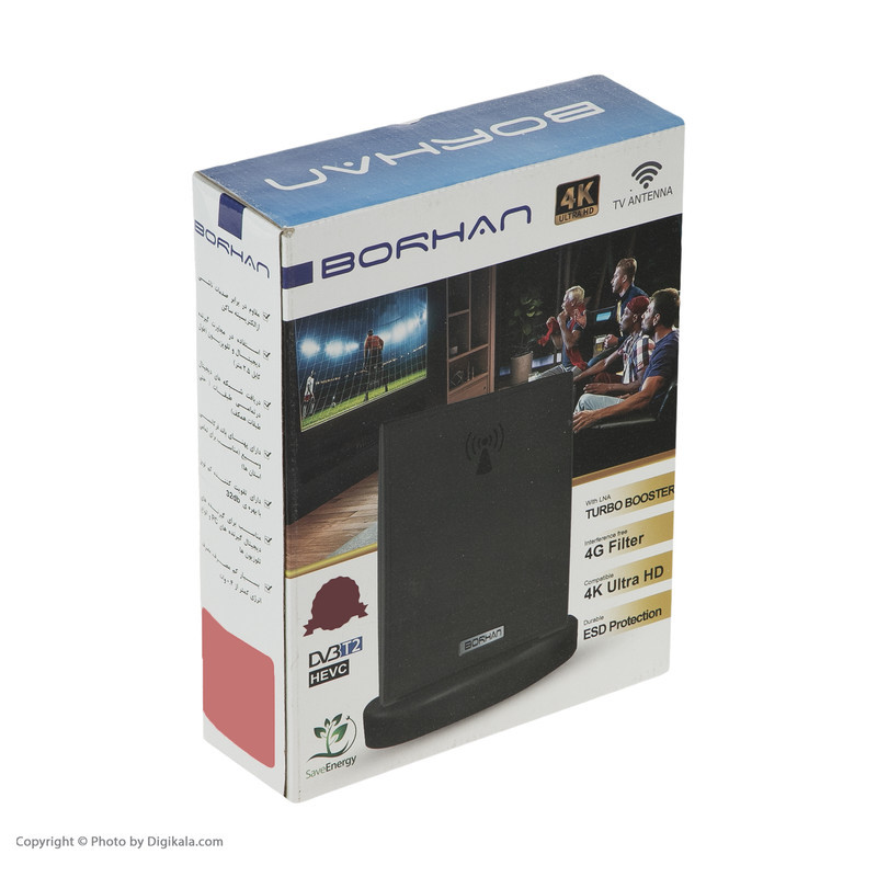 آنتن رومیزی مدل 4Kیک آنتن دیجیتالی باکیفیت از برند برهان است. این آنتن رومیزی از تصاویر 4K و Full HD پشتیبانی میکند و میتواند امکان دسترسی به کانالهای داخلی را برای کاربر فراهم کند. این آنتن به شکل یک مستطیل باریک طراحی شده است. همچنین با وجود پایهای که برای آن در نظر گرفته شده، کاربر میتواند آن را به سادگی روی میز تلویزیون یا هر جای دیگر قرار دهد. همچنین کابل 2.5 متری آن امکان قرار دادن آنتن با فاصله از تلویزیون گیرنده دیجیتال را فراهم کرده است. این مدل با بهرهگیری از فیلتر 4G جهت حذف پارازیت و مقاومت بالا در برابر صدمات ناشی از الکتریسیته ساکن به یک گزینه ایدهآل در بازار تبدیل شده است. همچنین آنتن رومیزی برهان دارای تقویت کننده کم نویز با بهره 32db است که با توجه با مصرف انرژی پایین (0.4 وات) به یک گزینه مطلوب و سازگار با گیرندههای دیجیتال و انواع تلویزیونها تبدیل شده است.